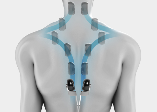 Dựa trên đường cong lưng đã phát hiện, độ mạnh massage sẽ được áp dụng đồng đều từ vai đến mông. Ngoài ra, bạn có thể điều chỉnh độ mạnh của massage tại 8 điểm dọc sống lưng theo sở thích của mình.
